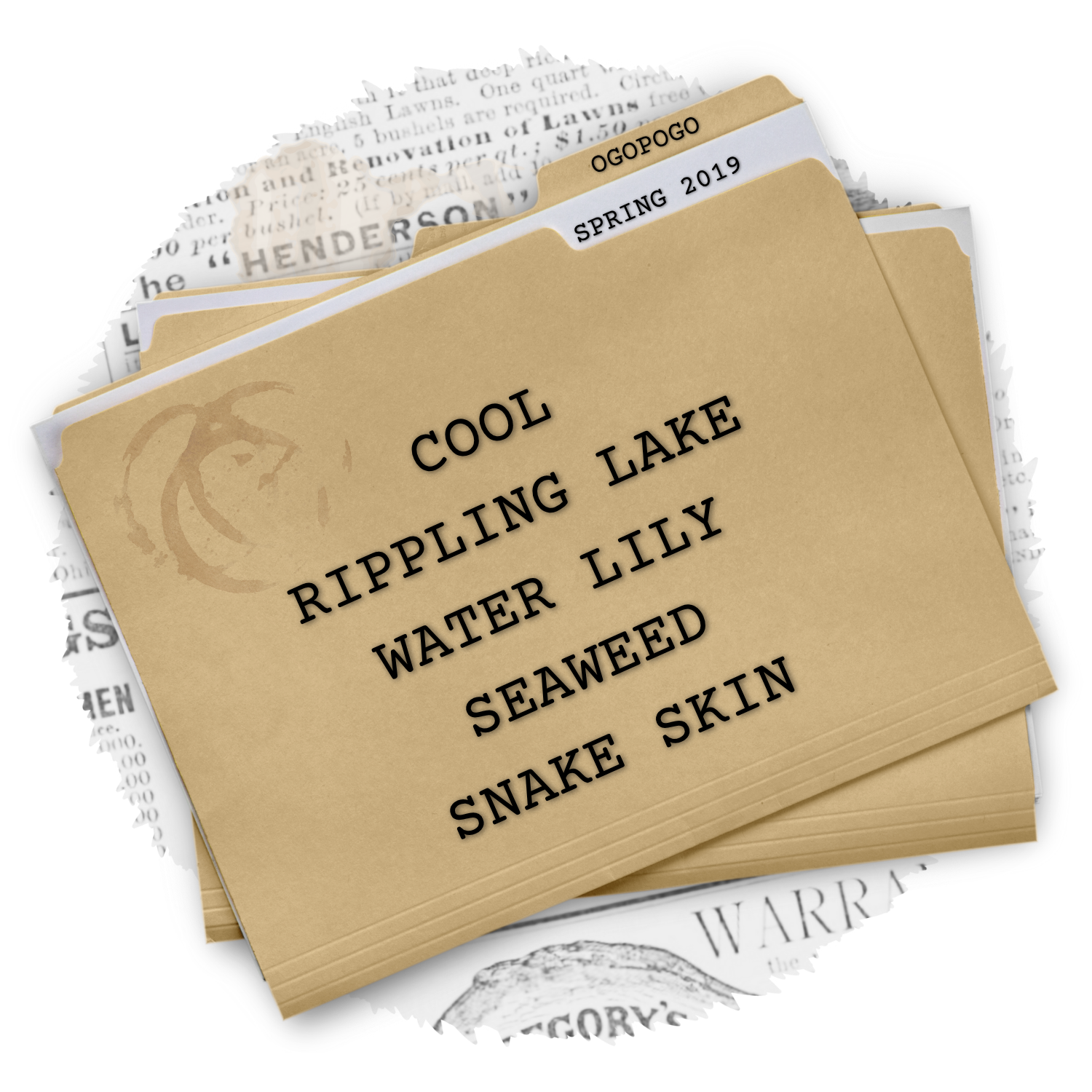 Notes: Cool Rippling lake, water lily, seaweed and snake skin