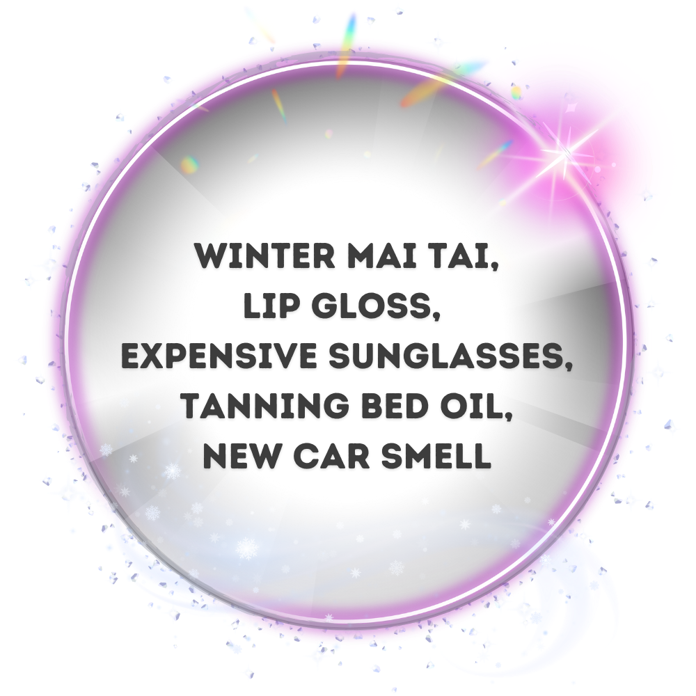 Disco Stardust - Winter Mai Tais, roll-on lip gloss, expensive sunglasses, tanning bed oil and new car smell