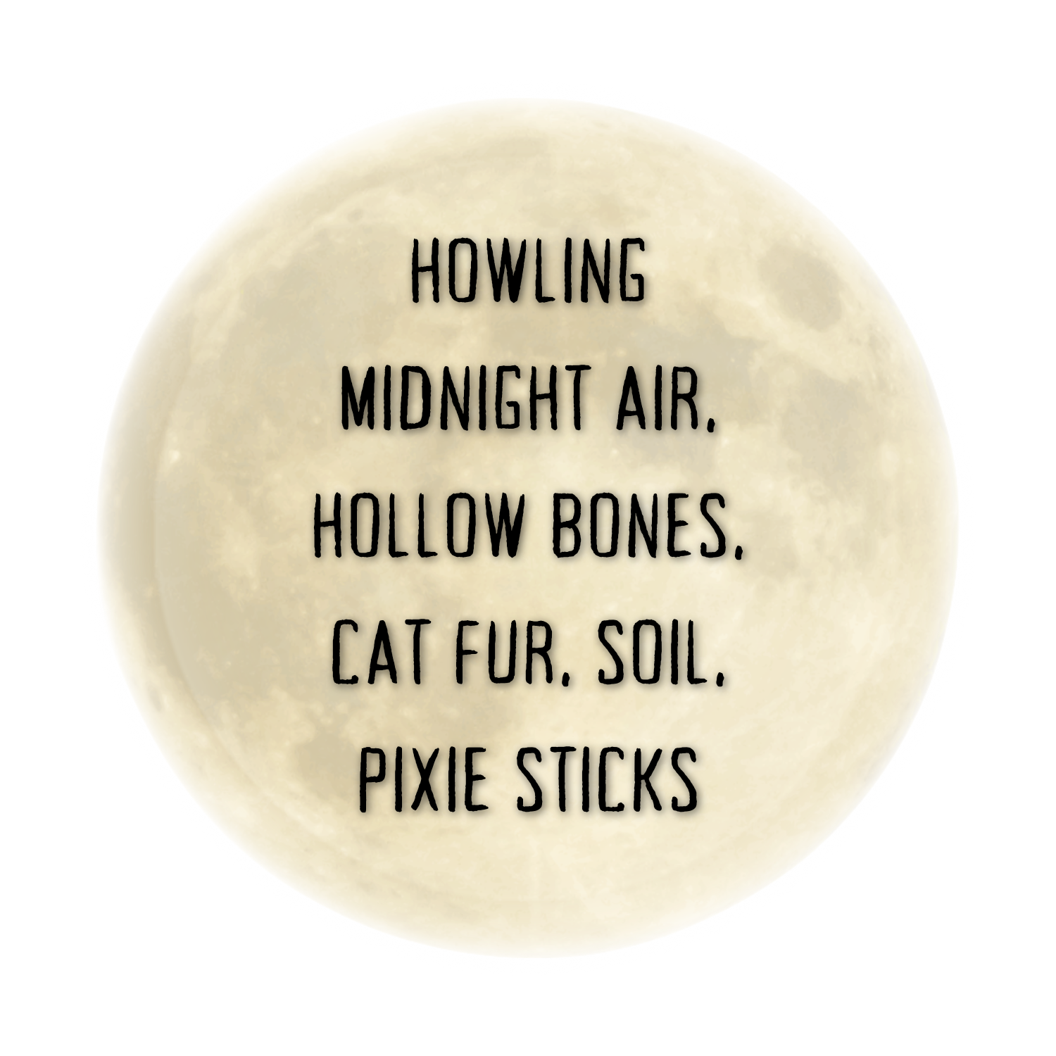 Notes: Howling midnight air, hollow bones, cat fur, soil and pixie sticks