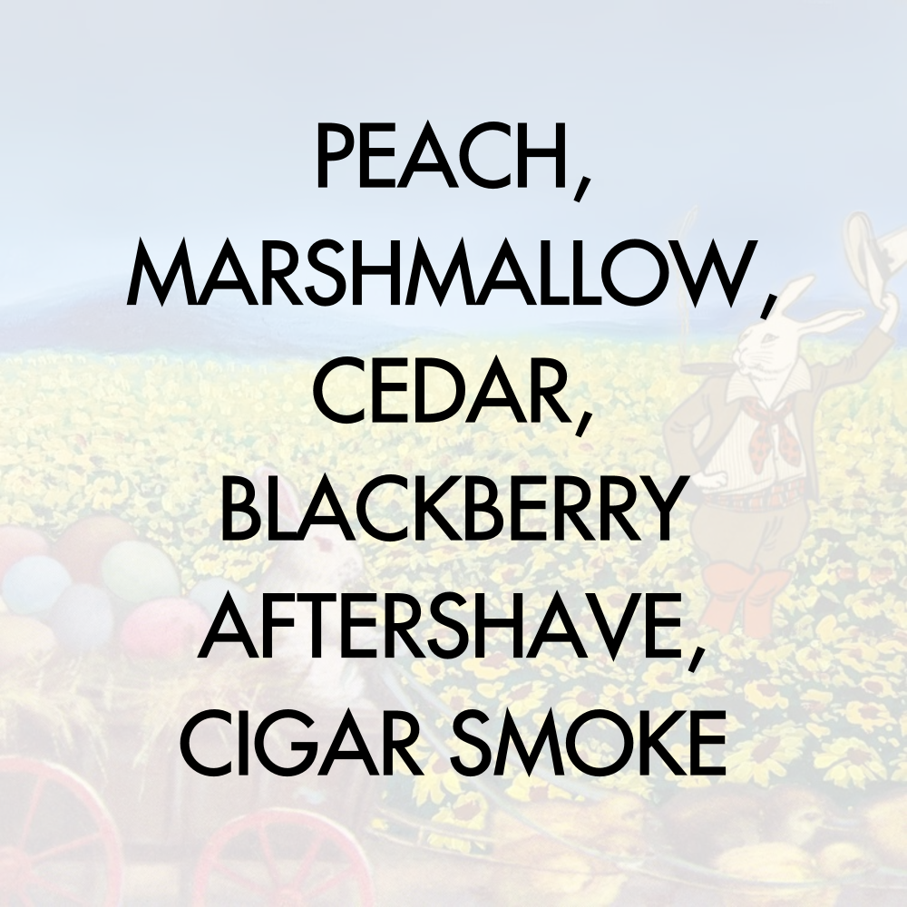 Notes: Stolen peaches, yellow marshmallow, chopped cedar, blackberry aftershave, and cigar smoke